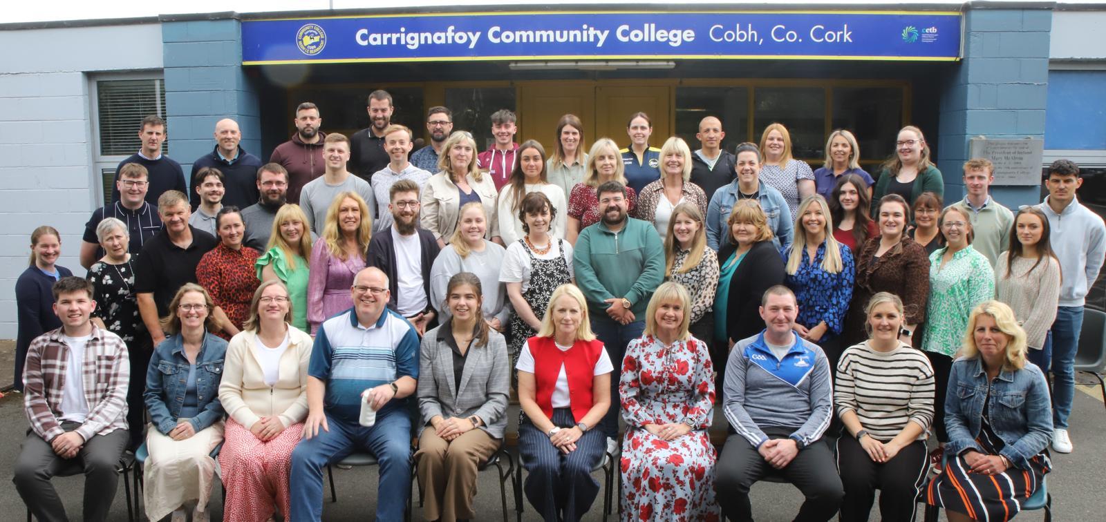 Carrignafoy Community College opened on its current site in 1979, but has been part of a long tradition of education provision in Cobh dating back to 1905. In 1930 the Cobh Technical Instruction Committee was absorbed into the County Cork Vocational Education Committee. Significant growth in numbers and provision over the years led ultimately to the opening of the current building, and as a fully-functional community college under the auspices of the Cork Education and Training Board and offering the full range of subject and programme choice, further growth and an extension of the school building is anticipated in the coming years.