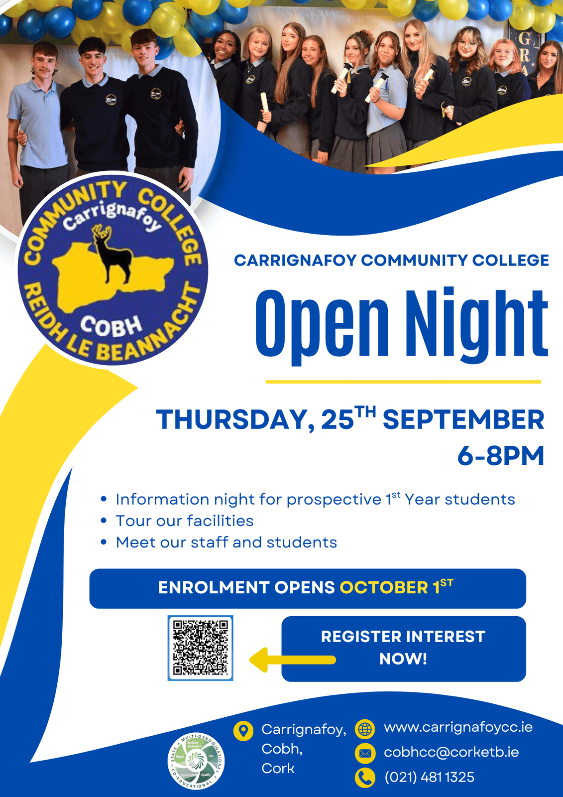 Enrolment for incoming first year 2026/2027 is open now. Closing date October 24th.